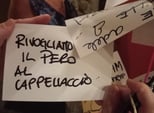 Sta di fatto che, la mattina del suo matrimonio (correva l'anno 2013), fu preso di mira... come da prassi: il tema non poteva essere improntato che sulle sue numerose ex... Con amici preparammo dei festoni, attaccati davanti casa, costituiti da fogli giganti nei quali erano stati appiccicati ritagli di giornale raffiguranti: bambini, bagnanti, bucce di banana, cioccolate ecc.; tutte immagini riconducibili, con un po' di fantasia, ad ogni sua ex: fu un vero capolavoro! Uno studio meticoloso di ricerca, di commenti e di tante risate! Peccato che... e non si è mai scoperto il colpevole...: se fu lo stesso Chino o qualche parente della futura moglie a far volare via tutto, in un batter baleno, con l'ausilio di una granata!!!