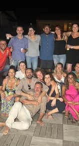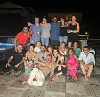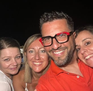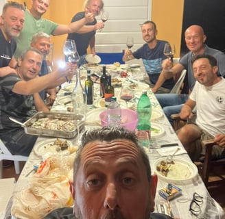 Da segnale, tuttavia, la brillante iniziativa lanciata in una splendida serata d'agosto da Marce (correva l'anno 2023), organizzata presso il Bagno "Sirena" nella terrazza vista-mare a noi riservata: un ritrovo del gruppo di amici del mare dello "Shangri" degli anni Novanta. Sicuramente "special gust" e attrazione della serrata fu la Carrubs, in una splendida forma come non si vedeva dai tempi d'oro della Discoteca "Mamà'". Su Marce, però, è doveroso spendere due parole: milanese dalla nascita... ma ormai castagnetano D.o.c, da quando ha acquistato casa proprio a Castagneto; innamorato del paese - e degli amici - fin dalla sua gioventù per aver trascorso qui moltissime vacanze estive. E la sua grande passione? Beh... naturalmente il vino... ma diciamo le cose come stanno: una vera fissazione tanto da essersi tatuato su di un braccio il logo del vino Sapaio.