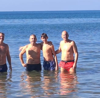 Lui capì ma ci volle un po' per fargliela togliere... a quel punto non ci rimase che tornare a riva a farci un bel bagno in un mare dall'acqua caldissima. Soltanto otto anni dopo... è stato possibile tornare a fare un bagno per un 30 ottobre, replicato anche il giorno successivo (correva l'anno 2024), presso il "Golfo di Baratti"; dopo un terribile mese di pioggia interminabile, con alluvioni varie sul territorio, e quando ormai l'autunno sembrava compromesso ecco finalmente "spuntare" nell'ultima settimana la tanto bramata "ottobrata".