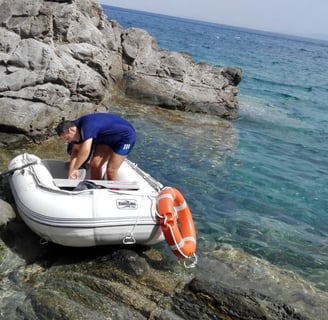 Una volta (correva l'anno 2017), infatti, con Beppe e la Pila uscimmo a remi dal porticciolo dello "Stellino" e, appena fuori, accesi il motore: tra gli occhi stralunati di tutti e con grande meraviglia, il "gommoncino" incominciò a girare su se stesso; li per lì rimasi spiazzato poi, dopo un breve ragionamento, mi accorsi di aver agganciato il motore all'incontrario!!! Tra un'infamata degli amici e una risata... rientrammo subito in porto per aggiustare il tutto...!