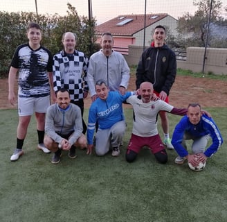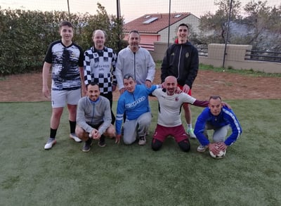 A proposito di pallone... erano forse dieci anni, o più, che non riuscivamo a fare una "partitella" insieme agli assidui giocatori del "Pistino" e, per "assidui", intendo quelli immortalati in "figurina" poiché tutti, ogni volta, avevano scusanti di lavoro, di famiglia e davano sempre "forfait"... me compreso; poi, come per miracolo, nel febbraio del 2023, con la nuova ristrutturazione del Piazzale "Belvedere" e, di conseguenza, con la creazione di un piccolo campino in sintetico, riuscimmo a darci appuntamento per una "partitella". Questi i partecipanti: Suino, Macario, Ruben, Puti, Prof., Mapino, Giovannino e qualche giovane recluta recuperata per arrivare al numero necessario...tutto immortalato con foto di rito. Qualcuno, naturalmente, un po' appesantito, altri, invece, inaspettatamente in forma. Un'oretta di divertimento e di vecchi ricordi... da lì ci promettemmo di rivederci ancora... ma credo, con rammarico, sia stato il nostro "canto del cigno"!