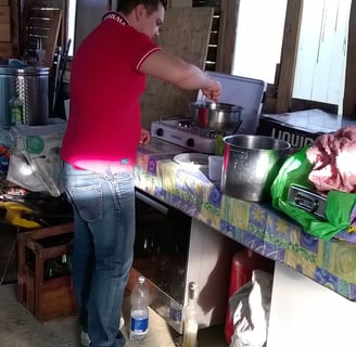 Da qualche anno, ormai, per festeggiare la chiusura dell'estate diamo vita, tra Settembre e Ottobre, ad una "ribòtta", per soli maschi, alla terra di Fabiolino, nel piano castagnetano, in località "Badia". Per l'occasione, cuoco "per una notte"... a gran richiesta... è il Pero che ci delizia sempre con piatti veloci ma di ottimo gusto e personalità...
