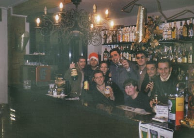 Così, sconsolato e amareggiato, salii in macchina di Spank alla volta del paesello e del “Black&White”. Il Bar, al rientro da ogni cena e ad ogni ora, si trovava sempre affollato ed era il momento giusto per prendere in compagnia un digestivo finale: un bell'amaro “maradona” (Jagermeister) accompagnato da una sigarettina offerta, o magari "rubata" a qualcuno dei presenti: c’era più gusto! La mia “vittima” preferita era la Dina, poiché a lei non c’era da fregarle solo la “cicca” ma anche il bocchino. Poi, a tarda sera e per pochi intimi, era concesso, delle volte, dalla Marescialla o da Bido di mettere un po’ di musica discotecara finendo a ballare spesso sui tavoli. Era anche il periodo (correvano gli anni dal 1997 al 2001) di una giovane barista ma con tutti noi sempre pronti a beffeggiarla facendo finta di portarle via, da sotto il naso, i bei cesti e pacchi posizionati sotto l’albero di Natale. Della brava barista, però, voglio raccontarvi questa sfortunata vicenda: Bido stava giocando a carte nella saletta, quando, accortosi di un certo sentore di fumo, ordinò gentilmente alla ragazza di dire a quel fumatore di spegnere immediatamente il sigaro. La dipendente, subito, si rivolse a quel signore: